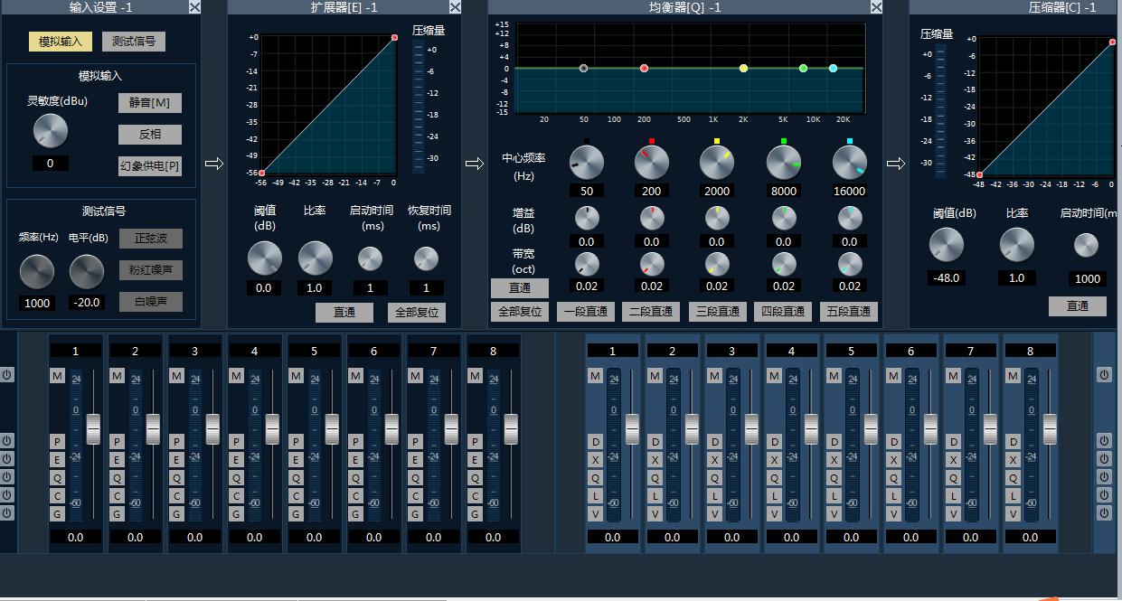 4輸入輸出一鍵式操作(靜音,反饋,混音,靈敏度等調節,內置反饋,回聲消除功能)