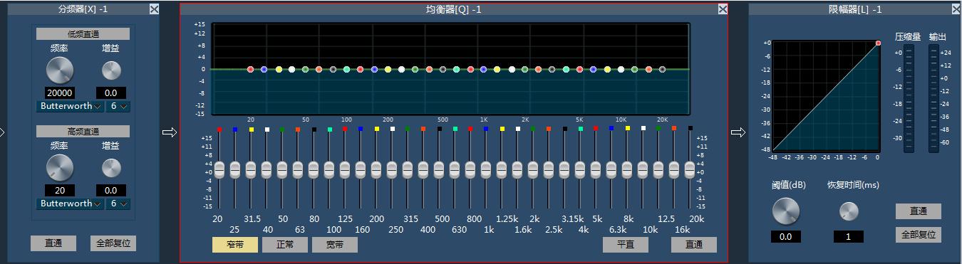 數字音頻處理器簡介: Kramer 數字音頻器 再也不需要擔心音頻的調試與維護升級問題 (噪音,回聲,嘯叫,麥克風靈敏度問題)不用再擔憂! 功能特色: 1 不需要光盤直接通過IP可連接即可下載軟件 2前面板帶USB功能,支持錄播功能,支持USB在線播放背景音樂。 3:支持鼠標滾動切換功能子菜單功能。 4輸入輸出一鍵式操作(靜音,反饋,混音,靈敏度等調節,內置反饋,回聲消除功能) 5支持遠程調試,支持IPAD Apple 登錄調節相關功能。 6場景模式支持多達100個以上 Kramer 數字音頻處理器 ?基本功能描述:8路/12路/16路輸入8路/12路/16路輸出,可選擇。 ?DSP音頻處理,內置反饋消除模塊,內置回聲消除模塊算法功能 ? 輸入每通道:前級放大、信號發生器、擴展器、壓縮器、8段參量均衡、自動混音臺 ?輸出每通道:音箱管理器(31段參量均衡、延時器、分頻器、高低通濾波器)、限幅器; ? 內置閃避器功能(DUCKER); ? 內置環境噪聲自動控制功能(SPL); 全功能矩陣混音功能; USB背景音樂播放功能; ? 內置自動攝像跟蹤功能; ? RS-232雙向串行控制接口用于控制外部其它設備如:視頻矩陣等RS-232設備,或接收第三RS-232控制,如HKV中控 等; ? RS-485攝像機控制端口; ?支持SNMP/SMTP遠程管理; ?支持在線軟件下載,支持IPAD控制, 支持100組以上場景預設功能。 連接設備前軟件打開界面(1) 設備軟件主界面(2) 設備軟件子界面(3) 連接設備后界面(4) 技術參數指標: 功能參數 KR-808T KR-1212T KR-1616T 軟件界面支持 中文/英文 中文/英文 中文/英文、繁體 DSP處理 ADSP-TS202S ADSP-TS202S ADSP-TS202S 模擬輸入通道 8 12 16 模擬輸出通道 8 12 16 二進制(開關信號)輸入 輸入輸出共用8個 輸入輸出共用8個 輸入輸出共用8個 二進制(開關信號)輸出 輸入輸出共用8個 輸入輸出共用8個 輸入輸出共用8個 RS232/RS485 有 有 有 支持場景預設定保存 100>組 100>組 100>組 以太網控制IP登陸軟件下載 有 有 有 USB多媒體存儲 有 有 有 電話接口 無 無 有 反饋消除 有 有 有 回聲消除 有 有 有 DANTE網絡接口 無 無 有 量化位數 24bit 24bit 24bit 采樣率 48k 48k 48k 頻率響應 20~20KHz 20~20KHz 20~20KHz 模/數動態范圍(A-計權) 120dB 120dB 120dB 數/模動態范圍(A-計權) 120dB 120dB 120dB 輸入至輸出動態范圍 114dB 114dB 114dB 總諧波失真+噪聲@1KHz <0.002% @4dBu <0.002% @4dBu <0.002% @4dBu 底噪(A-計權) -90dBu -90dBu -90dBu 延時存儲 2s 2s 2s 模擬輸入至模擬輸出系統延時 3ms 3ms 3ms 輸入阻抗(平衡式) 20KΩ 20KΩ 20KΩ 輸出阻抗(平衡式) 100Ω 100Ω 100Ω 最大輸入電平 +24dBu,平衡 +24dBu,平衡 +24dBu,平衡 最大輸出電平 +24dBu,平衡 +24dBu,平衡 +24dBu,平衡 話筒前置放大器等效輸入(等效輸入噪聲),22-22kHz A計權)EIN. 優于-131dBU 優于-131dBU 優于-131dBU 幻象電源(每輸入) 48V 48V 48V 輸入共模抑制,60Hz 80dB 80dB 80dB 通道隔離度,1kHz 100dB 100dB 100dB 尺寸(寬x深x高) 430*425*89 430*425*89 430*425*89 運輸重量 4Kg 4Kg 4Kg 電源功耗 <70W <70W <70W 電源要求 220V/50Hz 220V/50Hz 220V/50Hz 工作原理圖