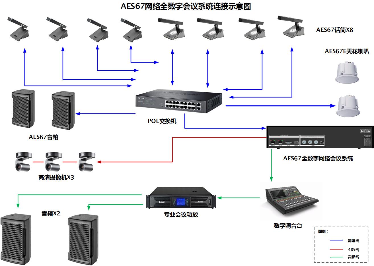 功能描述: 1、采用AES67網絡傳輸協議。2、支持會議發言、會議攝像跟蹤等功能。3、采用網絡連接方式。4、輸入輸出音量調節。5、多通道音頻流混音。