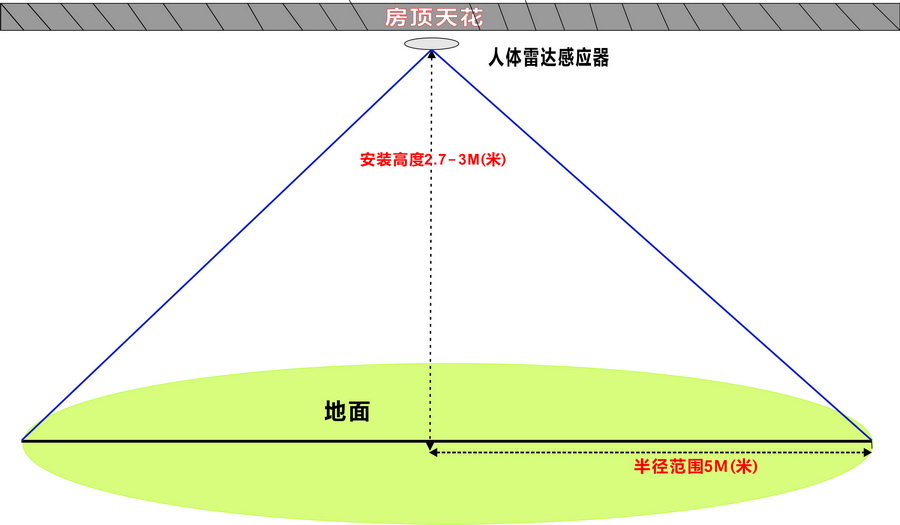 半徑8m、水平和俯仰方向夾角±60°立體扇形空間