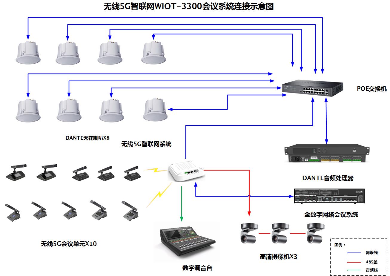 無線5G智聯(lián)網(wǎng)會(huì)議系統(tǒng)WIOT-3300是我們創(chuàng)新產(chǎn)品,可免去煩瑣的布線、安裝快速方便,操作簡(jiǎn)單,特別適合項(xiàng)目改造、移動(dòng)會(huì)議,臨時(shí)設(shè)備增加及無法布線等場(chǎng)景使用。系統(tǒng)采用雙數(shù)字與模擬融合設(shè)計(jì),可實(shí)現(xiàn)數(shù)+數(shù)+模三備份,支持DANTE網(wǎng)絡(luò)協(xié)議和HD-Sound網(wǎng)絡(luò)協(xié)議,音頻信號(hào)互聯(lián)互通,,PoE供電技術(shù),信電合一,一條網(wǎng)線搭起一套會(huì)議系統(tǒng),雙電源冗余技術(shù),確保系統(tǒng)高可靠行,支持?jǐn)z像跟蹤功能等,廣泛應(yīng)用于政府會(huì)議室、集團(tuán)會(huì)議室,報(bào)告廳及臨時(shí)會(huì)議快速組建。