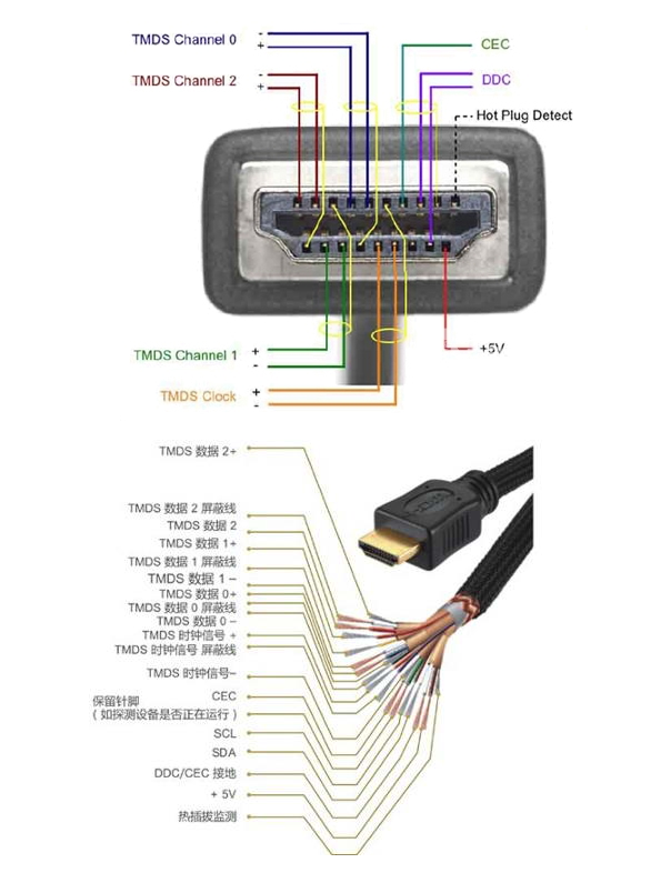 HDMI線中文名稱(chēng)是高清晰多媒體接口線的縮寫(xiě),僅用一條HDMI線就能高品質(zhì)地傳輸未經(jīng)壓縮的高清視頻和多聲道音頻數(shù)據(jù),最高數(shù)據(jù)傳輸速度為5Gbps。同時(shí)無(wú)需在信號(hào)傳送前進(jìn)行數(shù)/模或者模/數(shù)轉(zhuǎn)換,可以保證最高質(zhì)量的影音信號(hào)傳送,因此被廣泛的應(yīng)用于電視機(jī)、DVD、機(jī)頂盒、PS3、電腦、平板電腦甚至手機(jī)在內(nèi)的設(shè)備,在高清影音傳輸方面擔(dān)當(dāng)著重要角色。