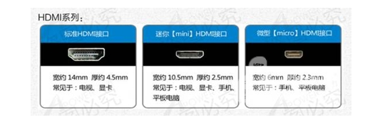 目前的HDMI接口有三種,A型(標(biāo)準(zhǔn))寬度13.9mm,一般適用于HDTV、電視、機(jī)頂盒、藍(lán)光DVD等設(shè)備;C型(Mini)寬度10.42mm,一般適用于MP4;攝像機(jī)、平板電腦等數(shù)碼產(chǎn)品;D型(Micro)寬度6.4mm,一般適用于智能手機(jī)、平板電腦。A、C、D這三種接口都有一根熱插拔監(jiān)測(cè)針,所以都是支持熱插拔的。